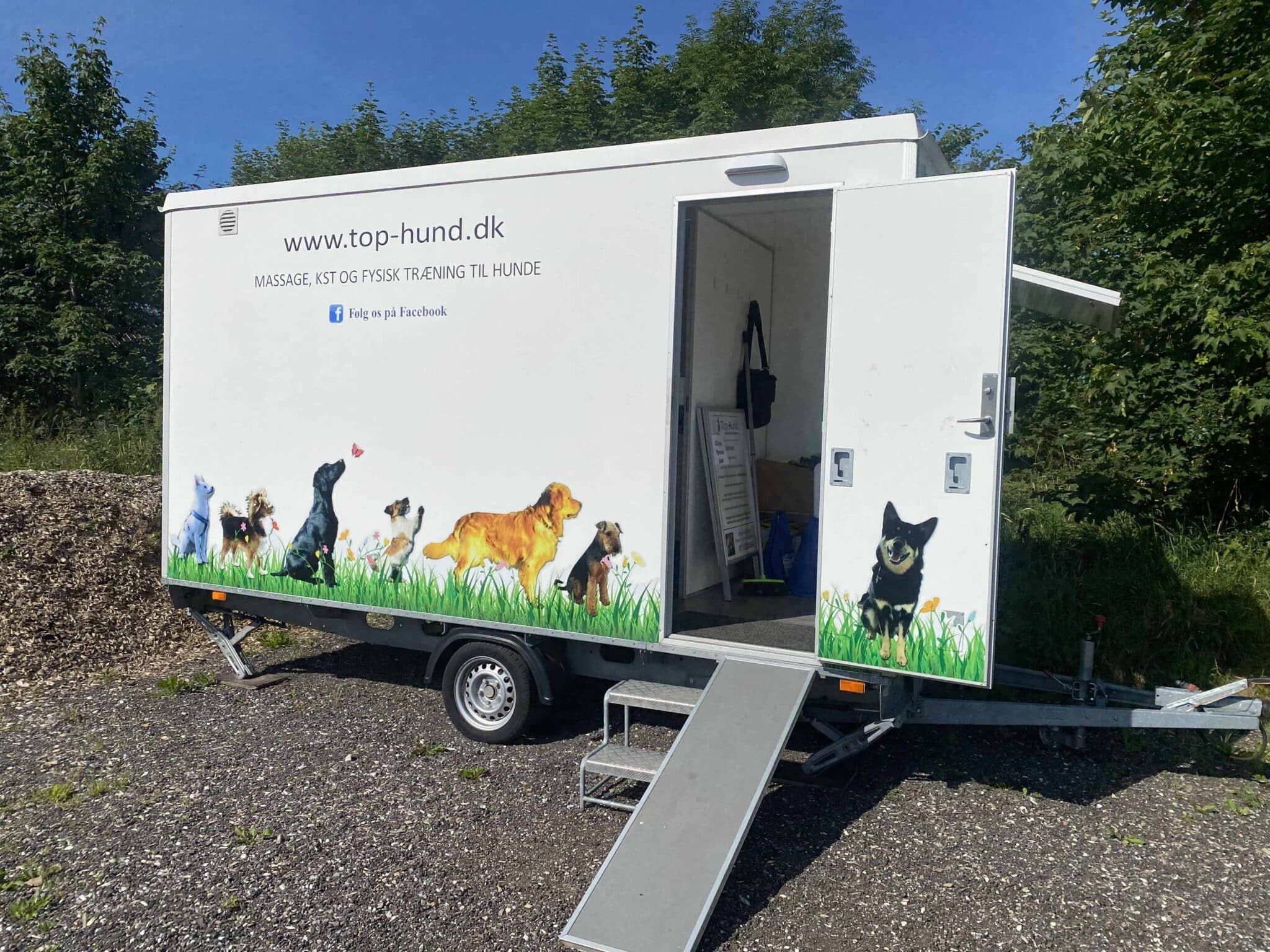Jeg tilbyder hundemassage i min rullende Klinik. Den holder til daglig på min hjemmeadresse i Frederikshavn kommune. Men ved bookning af min. 5 hunde kommer jeg gerne ud og holder ved jer. Det kan være klubber, træningspladser, kennel, pension, butik etc.
